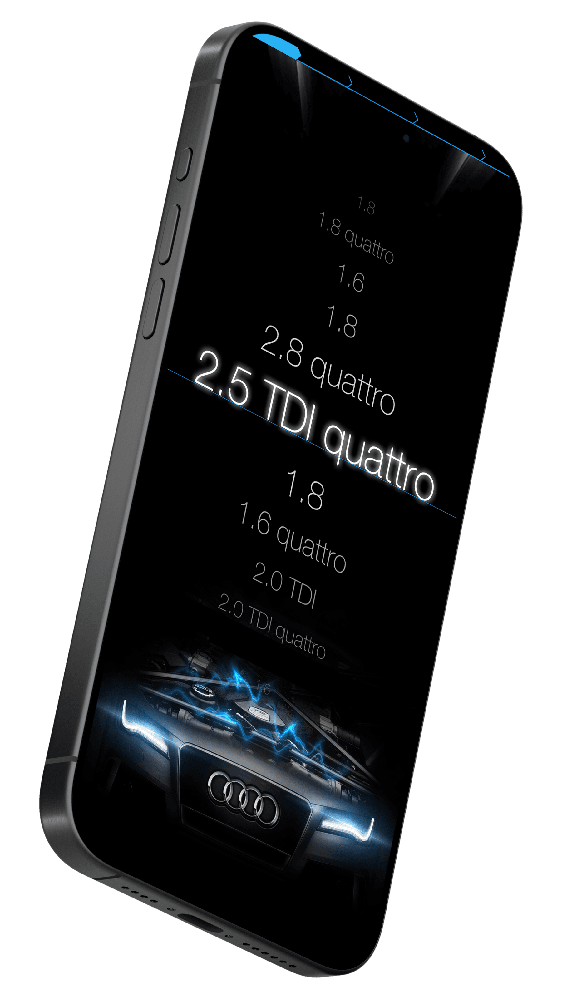 Using the so-called roulette wheel, we can select the model, make, and type of car engine.