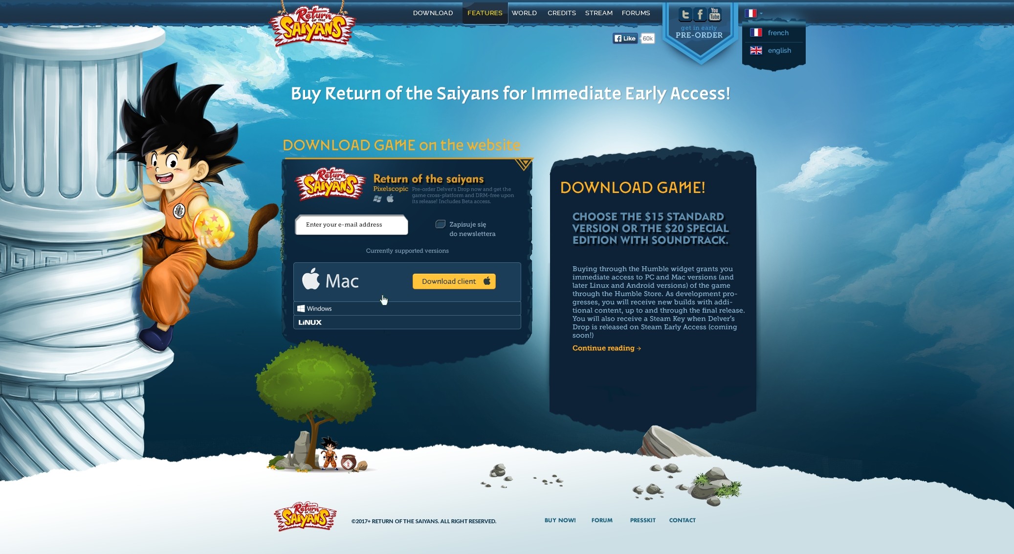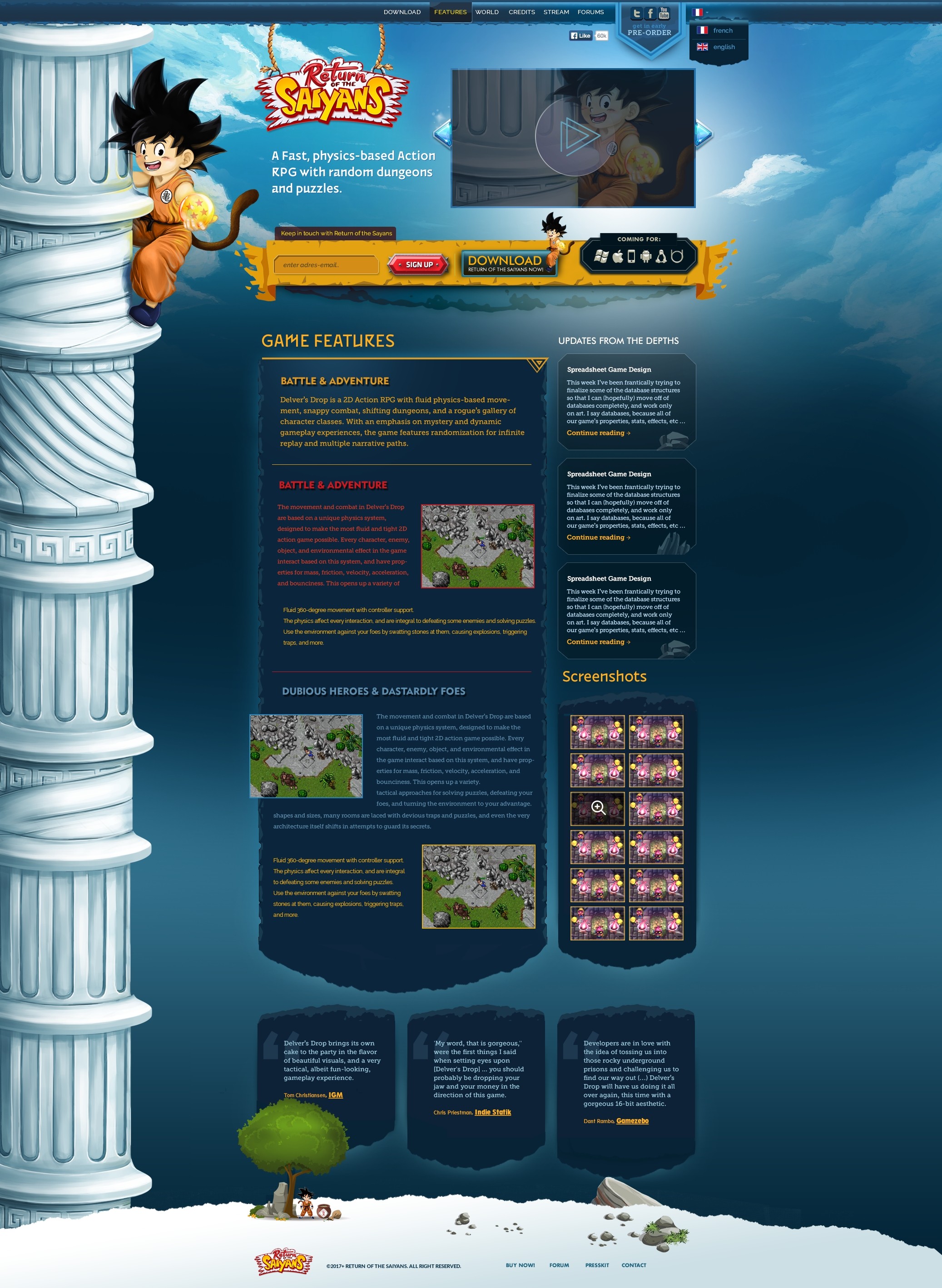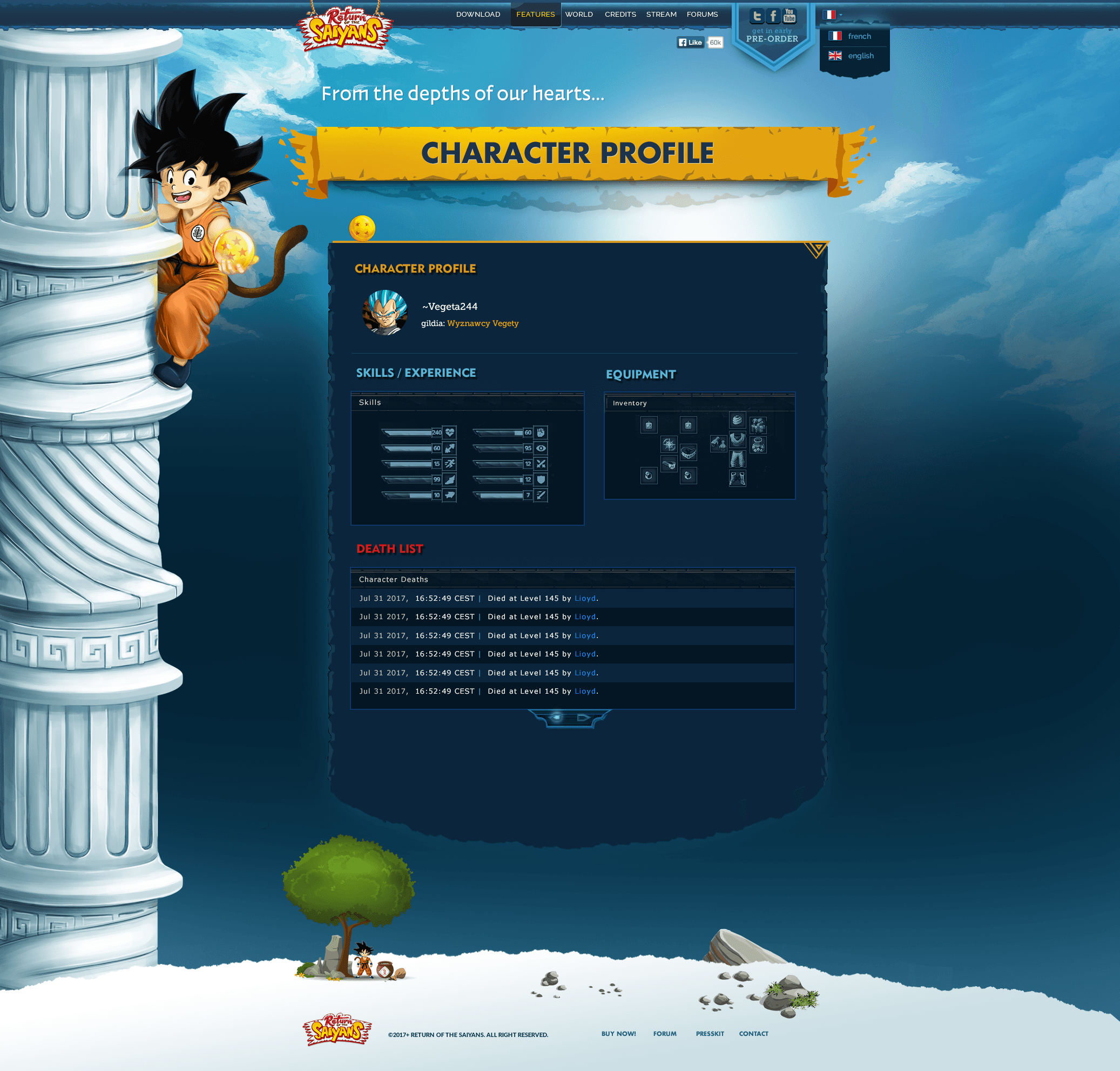 Na potrzebę klienta przygotowałem cały userflow zintegrowany z api gry online ReturnOfTheSaiyans. Na zlecenie przygotowałem również prototyp swiecących kulek łącznie z wersją responsywną.