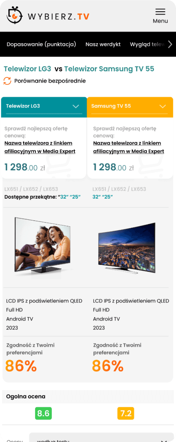 I prepared the entire userflow, including a prototype, so the client could better understand what had been done. Importantly, I highlighted the percentage of TV fit to needs and the store offerings (affiliate links).